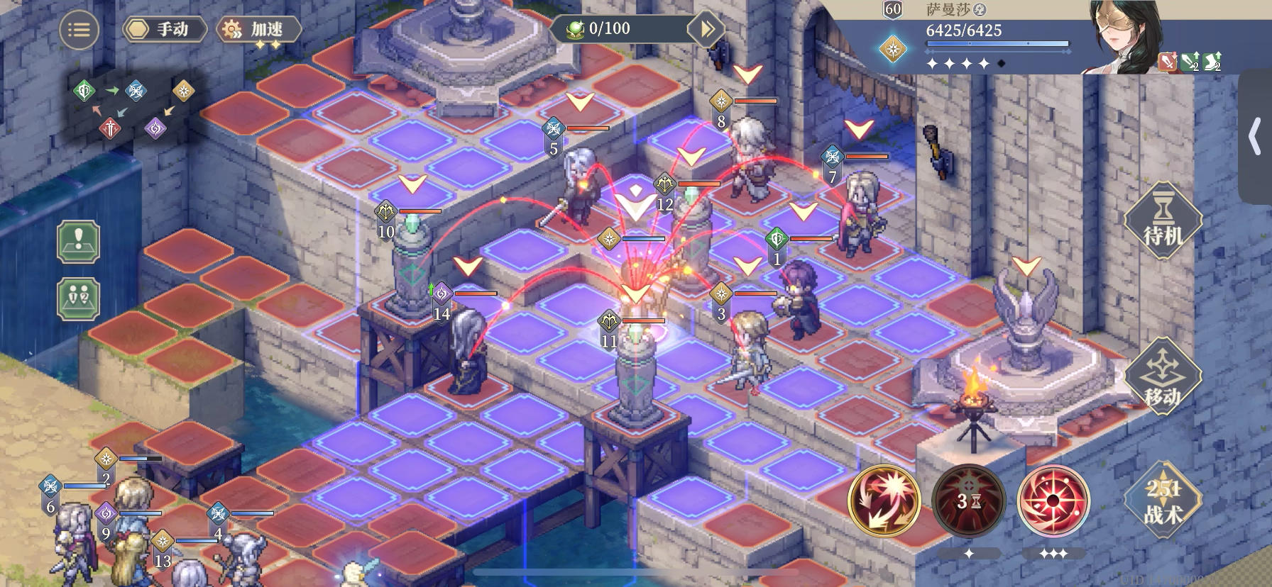 柯莱丹萨+小王女+SP萨曼莎 利用刻印共鸣达成多回合二连AOE 老王女吉祥物用来再动萨曼莎不划算 因为100倍率只触发一次 再动越多亏的越多 但是配合追击指令倒是可以连打4发[表情_微笑]