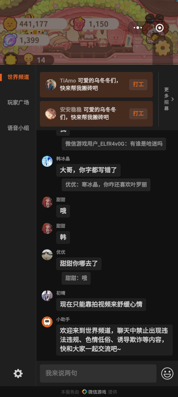 微信搜“乌冬的旅店”里面有世界频道,上面招募打工仔。只有手速快,那个份工你一定打得到!!不需要再苦苦加好友打工!