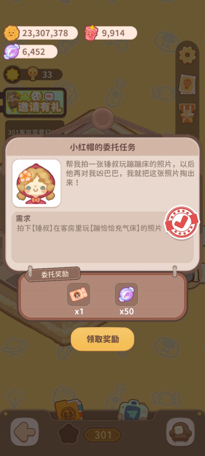 【普通客人】哈哈:饼干人中钟叔:休息室-木制入户柜枕头:休息室-投币洗衣机玩具熊:休息室-打折按摩椅小红帽:饼干人中包子:二楼朴素床头柜【初级客人】烧卖:二楼-脏脏洗漱台闪电:二楼-怀旧电视机盖:二楼-小花园桌二哈:休息室-乒乓球台奶盖:服饰-牛牛大吉牙牙:任务解锁大力:二楼-蛋黄落地灯开罗:二楼-藤编沙发养蜂先生:餐厅-简约圆桌+餐厅-大虾拉麦面蛋花:服饰-日常
