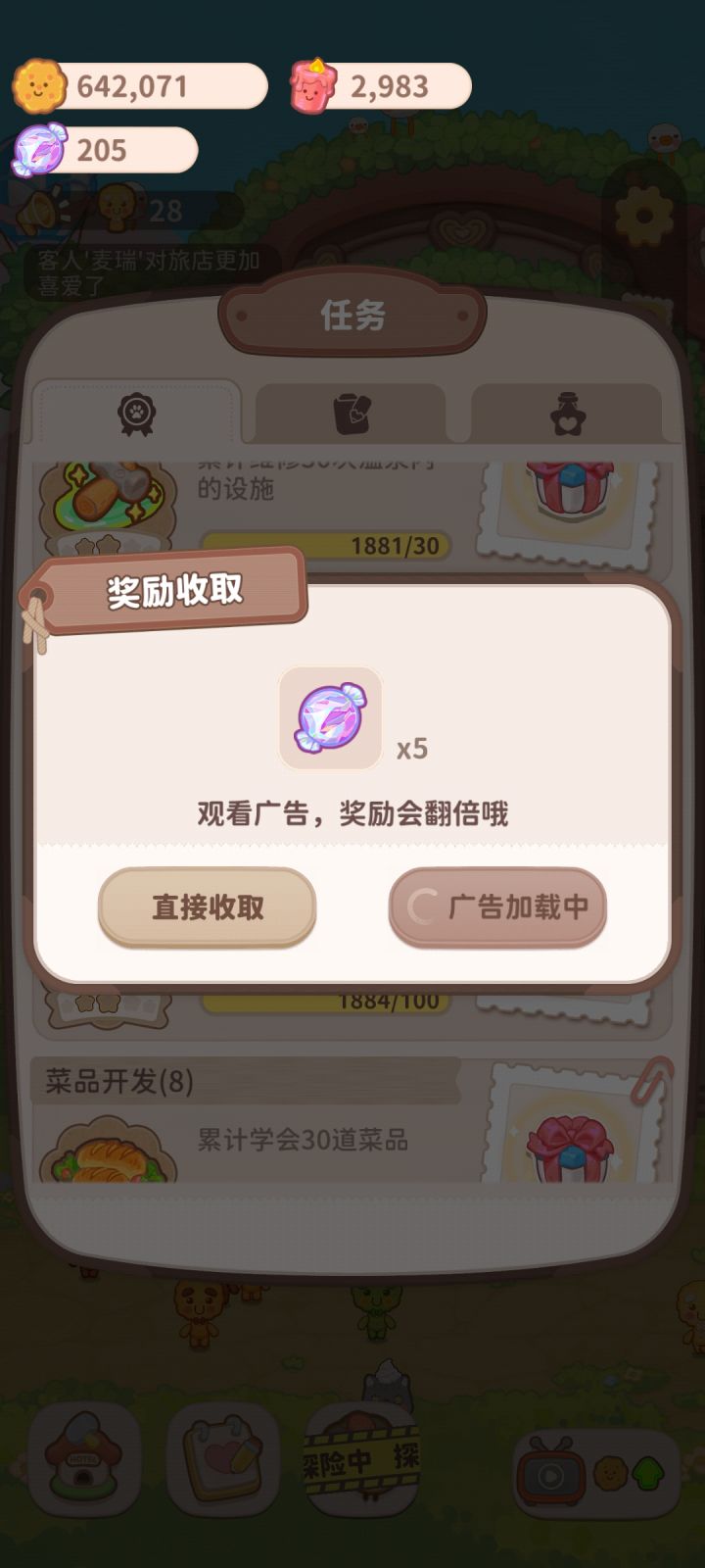 这次更新好几十个成就,我收奖励收的手都断了,就不能搞个一键收取吗,至于广告,你给他们合起来剪成一个半小时的视频,我一次性看完不行吗,拿一次奖励看一次广告真的好累🙁🙁🙁🙁