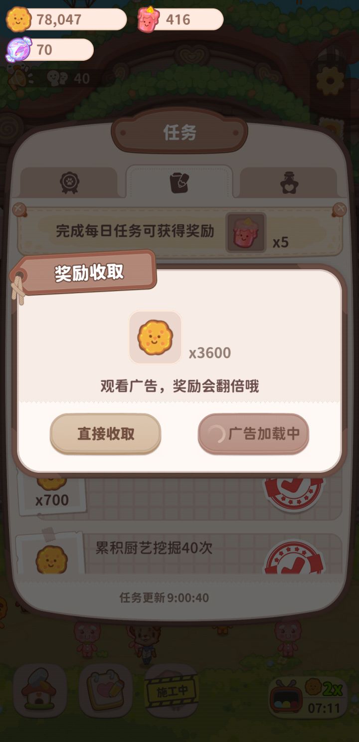 更新后领取双倍看广告一直转圈,广告跳出来了又不能分屏,能快点解决嘛?不然只能删除了,太浪费时间了