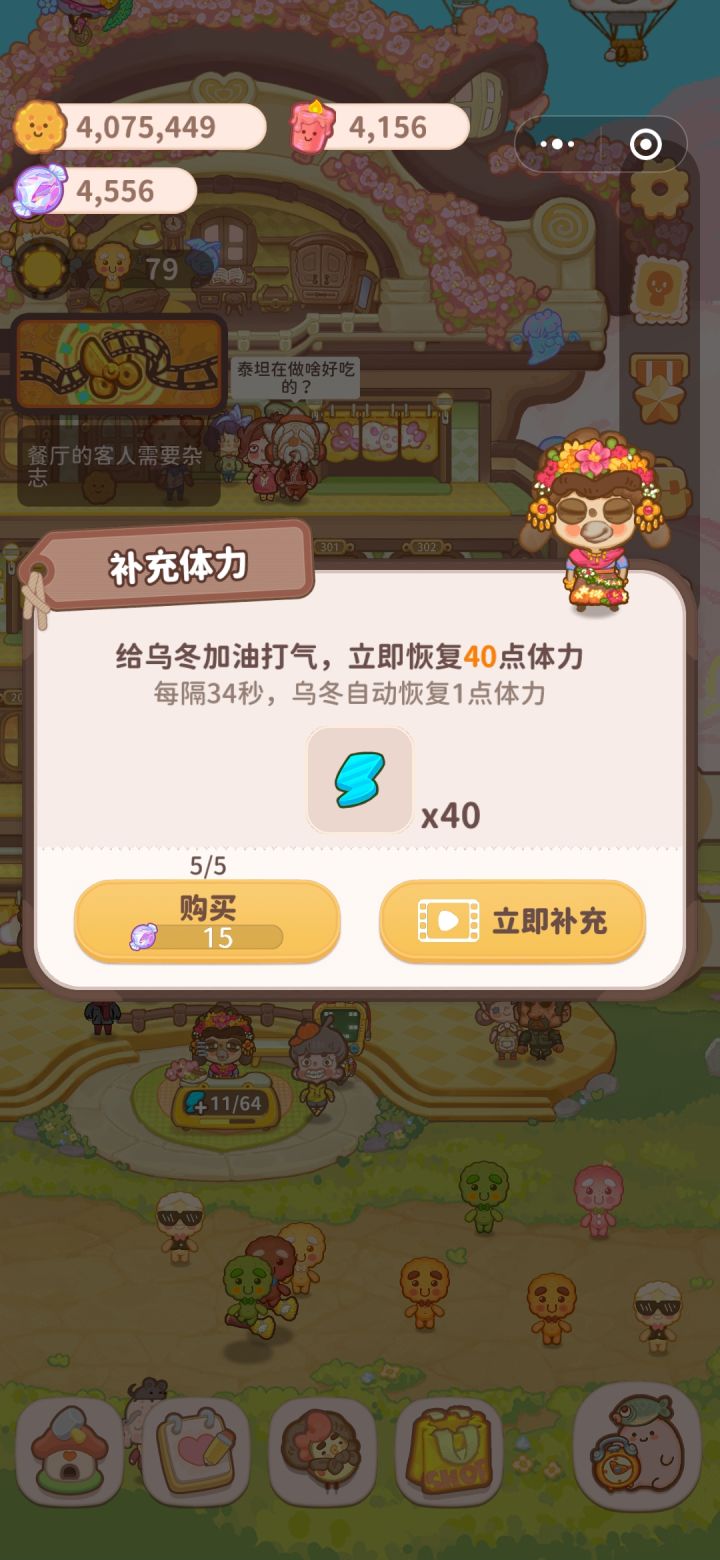 微信小程序版本4.1.2,每次点到补充体力,就卡住,无法点击任何按钮,只能重新进入游戏,这是什么?bug吗?找客服也不回复……看似更新了很多内容,实则还是原来的,更新的很多操作(如餐厅“数独+扫雷”、快速切换查看房间家具而不是切换查看房间、老家具标“new”等等),很鸡肋啊……何必呢?