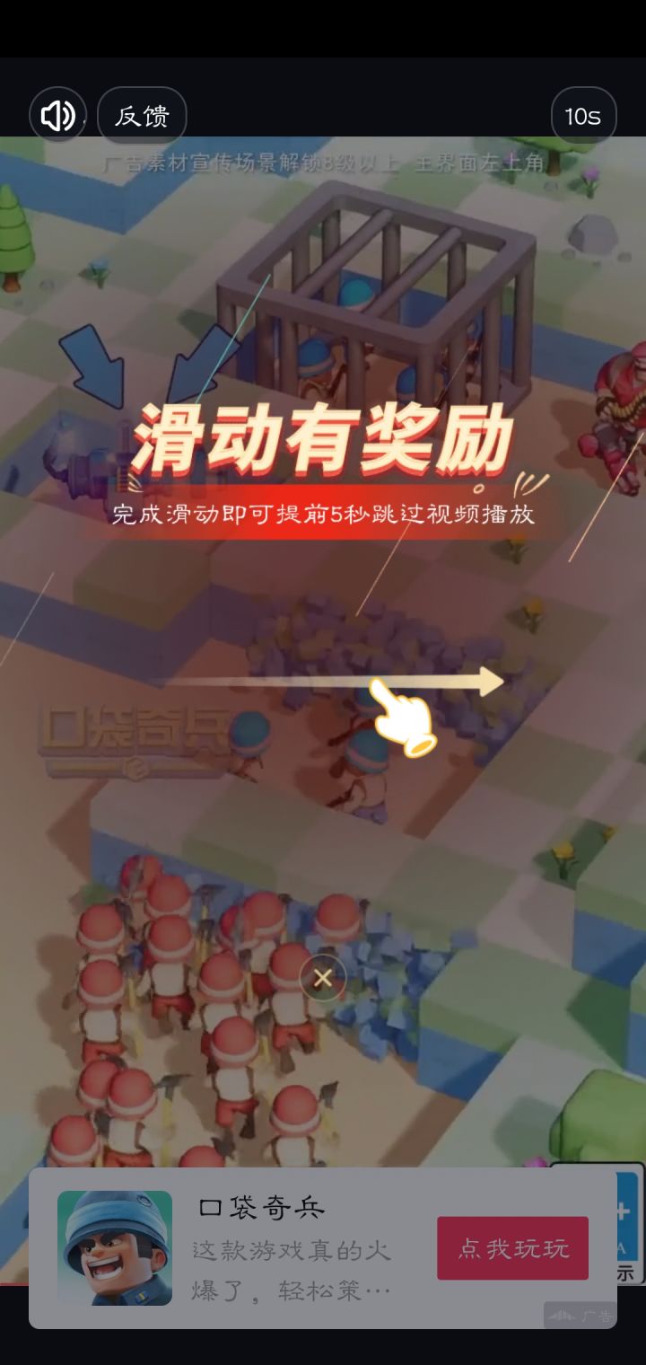 跳过也是向右滑动,下载也是向右滑动,虽然知道乌冬这个游戏不氪金,只能看广告,官方也不容易,但这样的广告设计未免太误导点击了