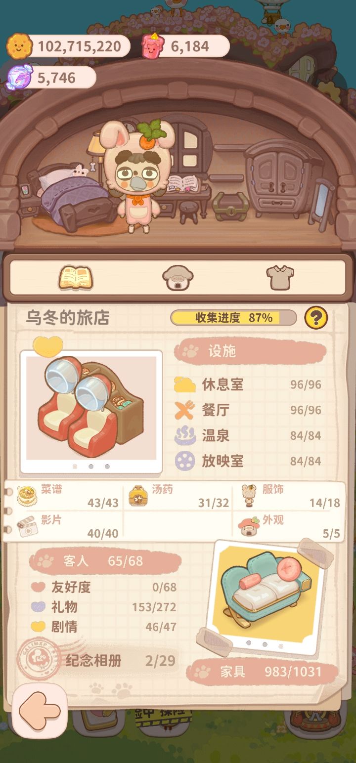 快更新吧🙊 还有转盘和签约鸭能不能弄个十连抽啊 动画真的挺费时的!!!!还有我的东西啥时候能赠送给好友呀又攒了好多 根本用不上还有今天餐厅菜品顺利毕业咯!!!!