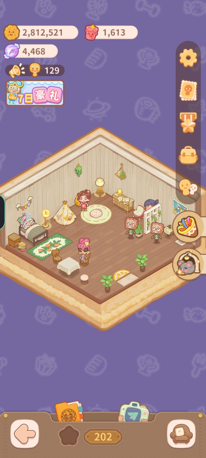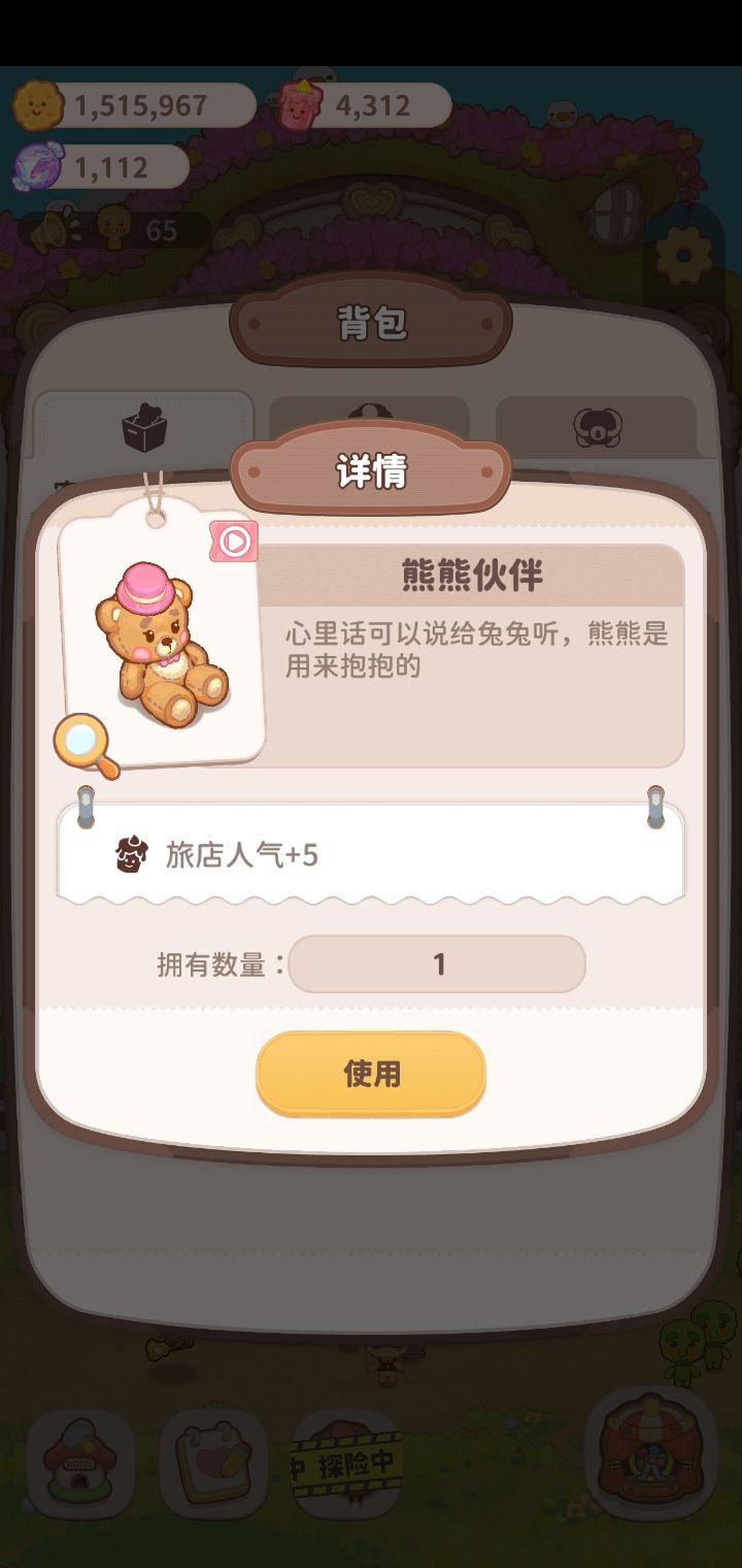 真心建议将客房家具里的凳子,沙发这种东西更新成四个角度都可以转换的,就有的时候,你想把它往另一个方向转,但是它转不了,可是不往那个方向转的话,这么摆着就会很奇怪,就比如我下面的这个图,不过这个图看着还好点,我觉得应该会有很多玩家都有这个感觉吧另外,谢谢你把奖品中的熊熊伙伴介绍语改掉,以前的是熊熊是用来殴打的,现在是熊熊是用来抱抱的,这样看着就让人觉得开心很多(不过这个熊是秃头了吗?帽子弹起来的时候,脑袋上面儿有一块儿与别的地方颜色不一样,很像秃头)
