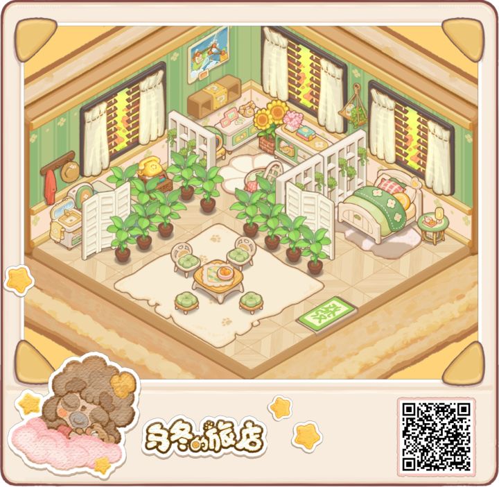 哈哈哈哈哈我的装修风格好统一啊。有些窗户解锁了,但是不太合适,301 302的围墙那么高,但是窗户不够高,感觉用起来有点别扭😟😟然后那个401 402和乌冬的小屋还不太会摆😤😤