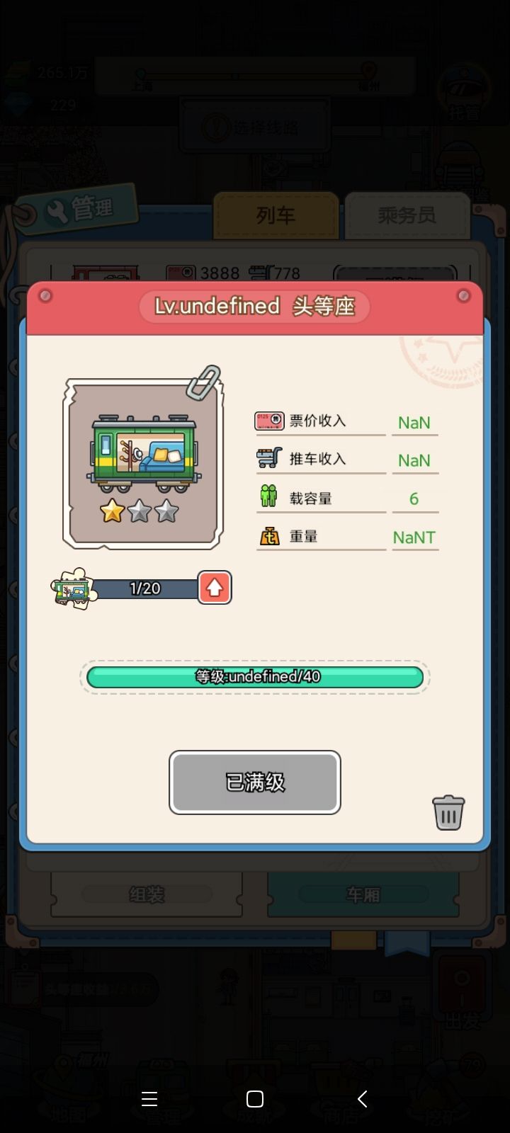 第一列软卧啥时候变成41级了,这啥bug……重量无具体了,反正清空了之后就摆它也不让摆说超重😅