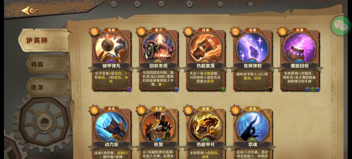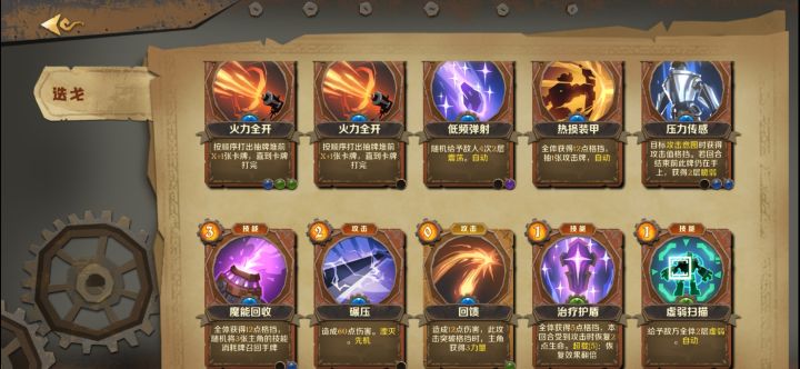 如图,以魔能回收/回收系统为核心,留几张消耗技能(破甲弹丸挺合适)尽量加快转速就OK了