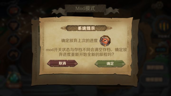 主界面新增Mod模式入口点击打开mod模式窗口,需要勾选总开关开启mod模式可以点击“查看详情“,查看每一期mod收录的内容勾选自己想要开启的mod开启之后,游戏内就会开启mod收录的内容注意:若存在正常模式的存档,开启mod模式后会清除正常模式的存档mod模式的存档,若更换开启的mod内容,也会清空之前的存档mod总开关状态与存档的状态不一致,就会出现对应提示开启mod模式后,游