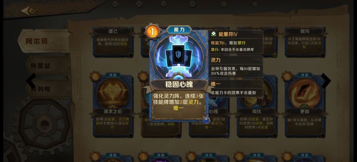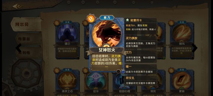 ♦︎♦︎♦︎开局选择♦︎♦︎♦︎天赋这里选择巫医手段,保证在火焰燃烧一切的词条下,每回合固定的回血。秘技卡建议选择律己,然后打造一个先机符,这样就可以在第一回合不消耗能量的清除所有负面 buff,比如难度词条的火焰净化一切。第一层阵营奖励选择烈焰学院,这样可以保证前期的生存率。这样开局就达到 50 血量上限♦︎♦︎♦︎卡牌选取♦︎♦︎♦︎如果这张牌作为灵力阵的最后一张打出,配上巫医手段,