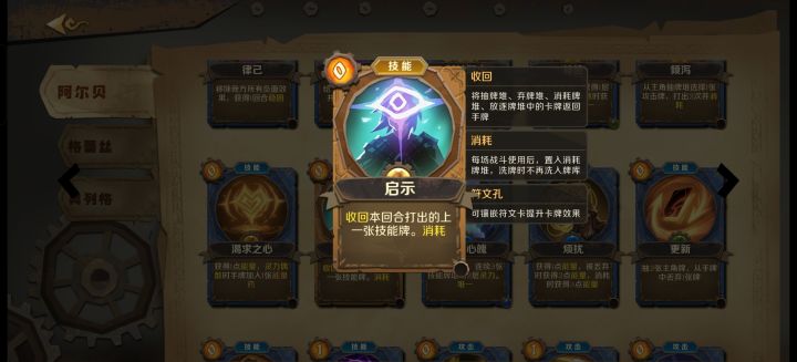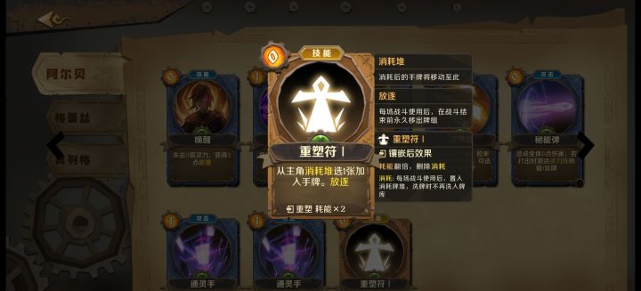 核心卡比较难找,成型很强只会被有卡牌限制BOSS克制前期多找过牌的卡,例如更新,通灵手伙伴也可以用,奥列格的情报大师实战先用两个能力,如果两张技能牌同时到先用启示,再用重塑如果只来了一张先用启示,等过到重塑再启动