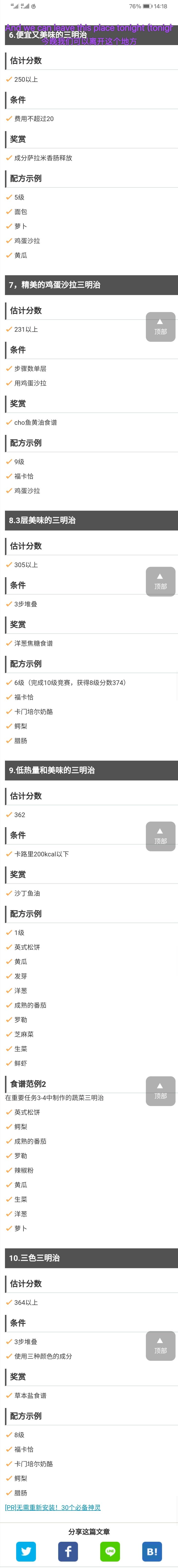 我看有博主发了一个攻略贴,但是是日文的,所以我用Google浏览器翻了一些我需要的,有比赛的,从第6个便宜又美味的三明治开始,还有重要任务,第3个五星级酒店赞助竞赛开始,还有面包清单及获得方法。原网址: