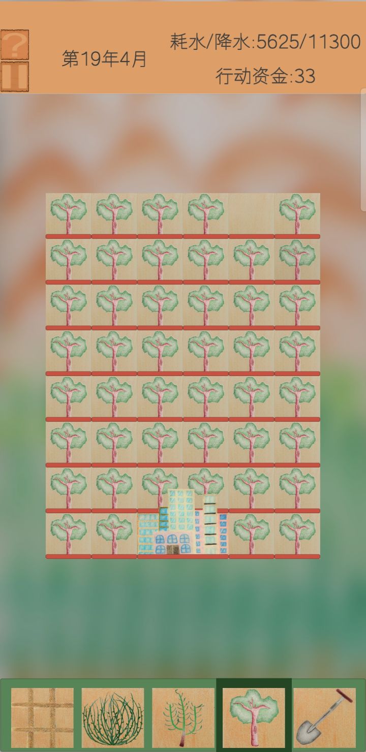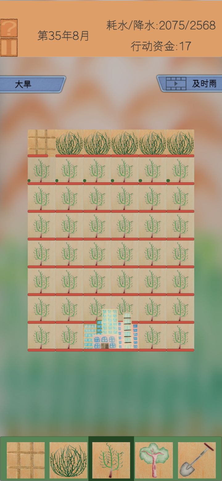 原理都一样,看着降水量来,超了就把树砍了,然后往外扩方格草 就是杨树耗水太多,容易暴毙