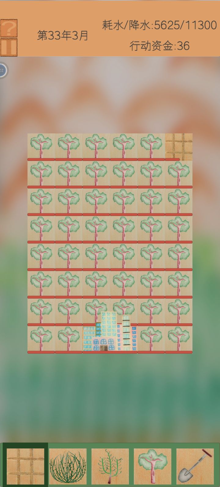 很有意义的一个游戏,刚开始玩的时候摸不着头脑,摸索很久以后觉得在中国西北地区治沙造林的人们真的很敬佩
