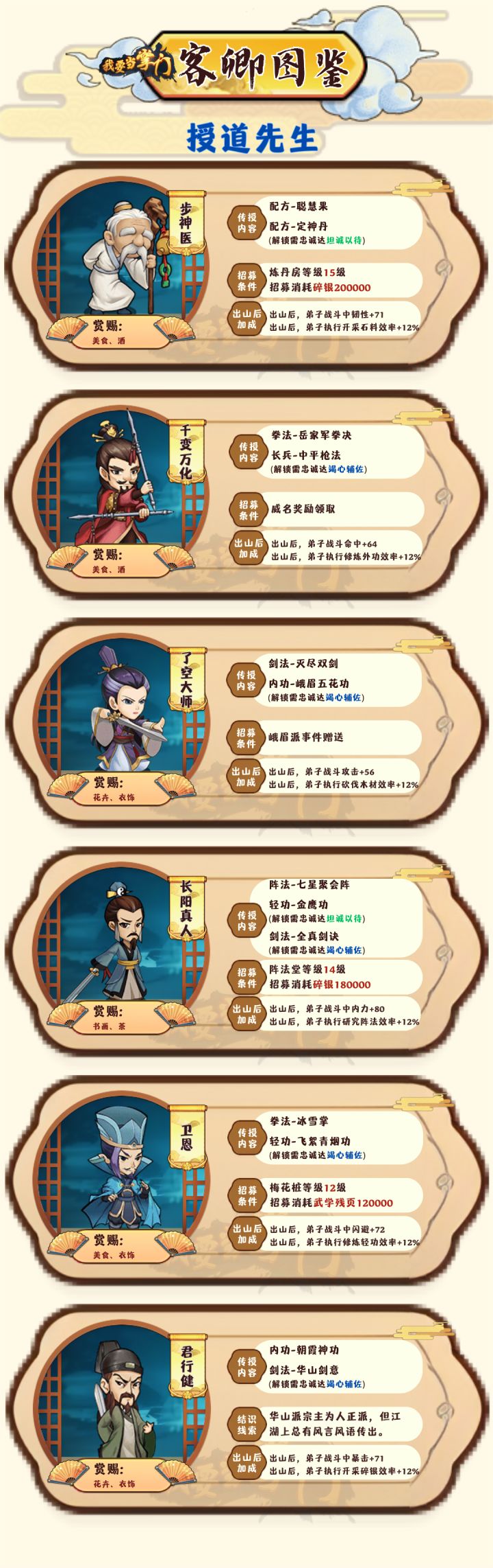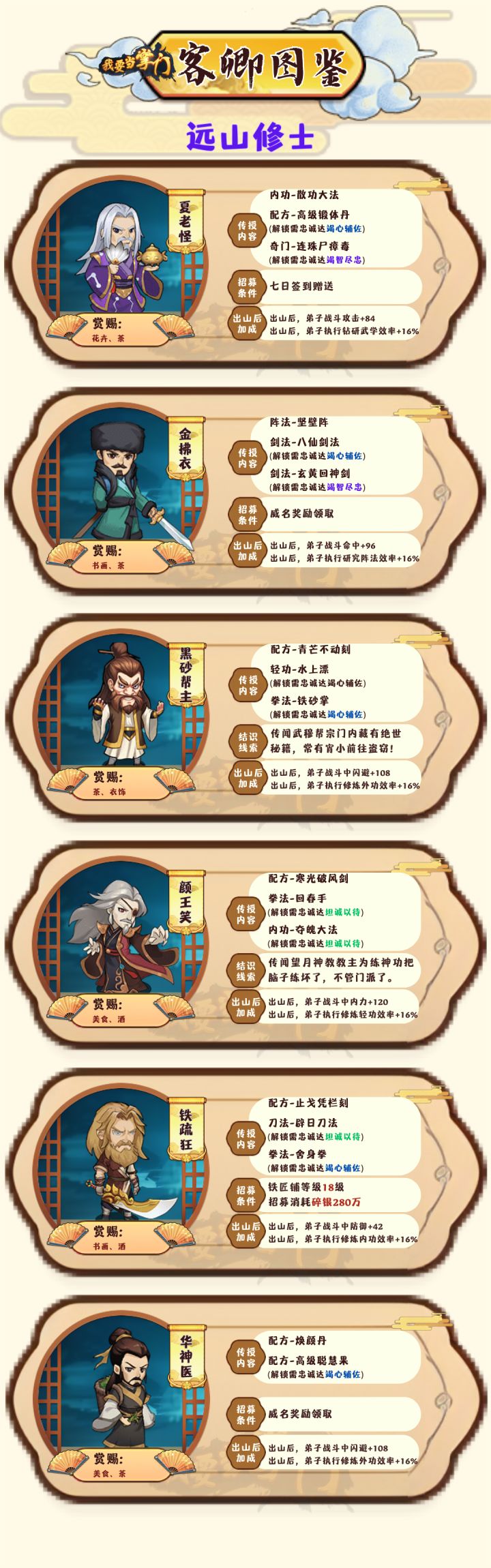 掌门有幸招募一代宗师为客卿坐镇门派那门派实力不得蹭蹭往上涨?!今日带来客卿图鉴——一代宗师篇~