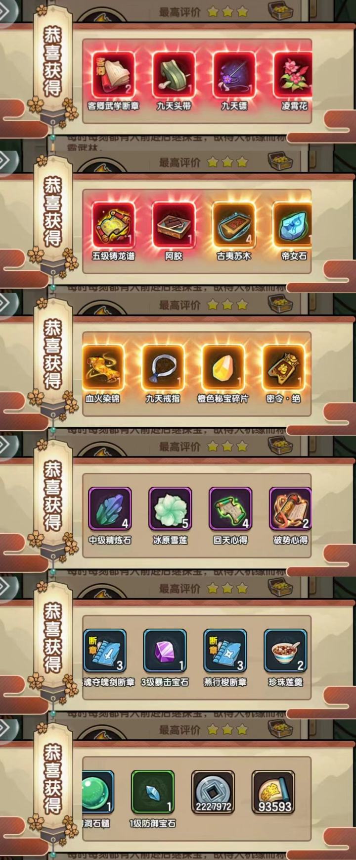 揭露游戏中改变一个号最大的道具:秘境卷打一次秘境能得到:装备,材料,秘宝,任务道具,精炼石,突破石,心得,宝石,礼物,断章,银子,阅历大家算一算这些资源总元宝来兑换,需要多少元宝才能得到?大家也知道改变一个号战力最快的几个方向都是和元宝息息相关的,那么每一张秘境卷都是价值连城,是这个游戏中性价比最高的道具,没有之一!然而得到秘境卷的方法很少,已经放在图中,希望对看到本帖的有缘人,战力飙升