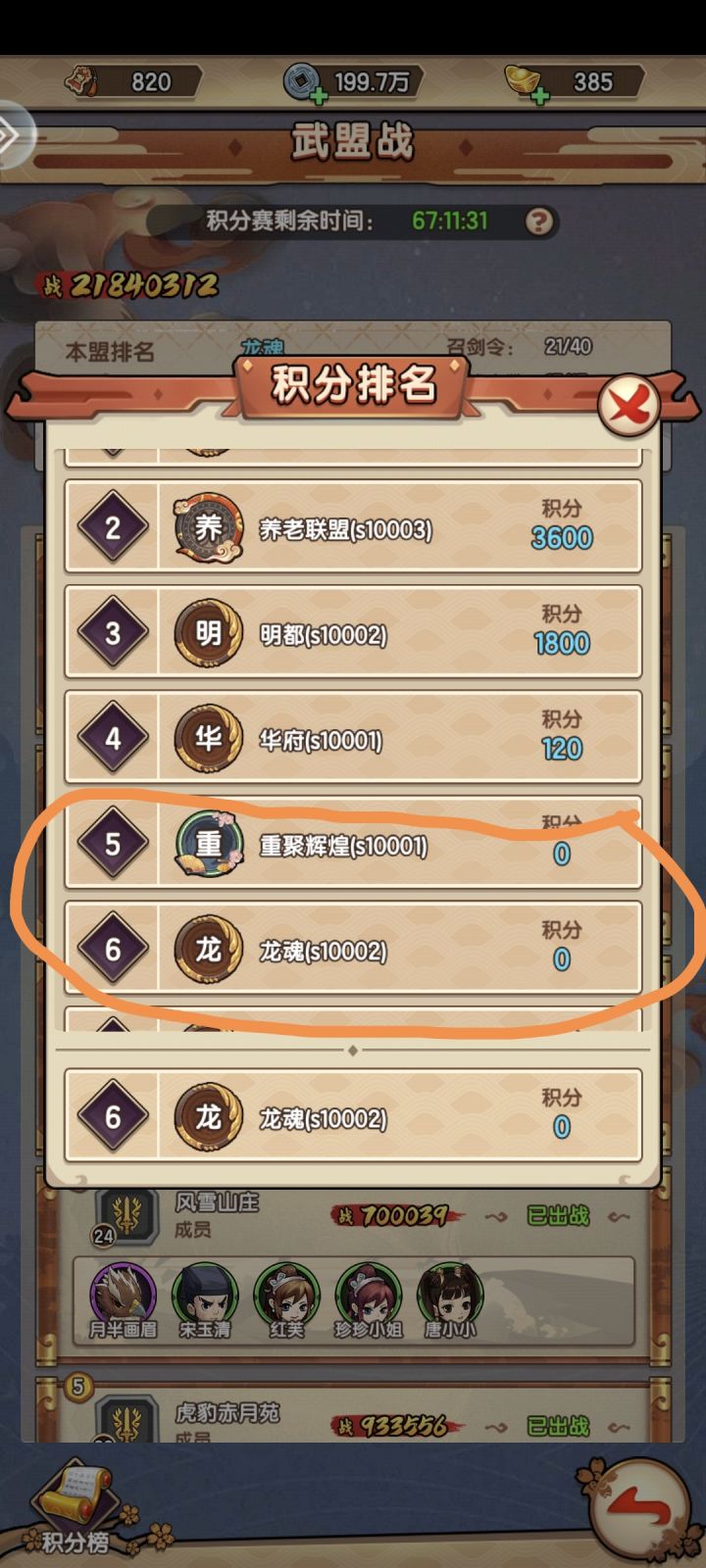 上次武盟战重聚辉煌第一名,龙魂第二名,怎么积分都是零分?