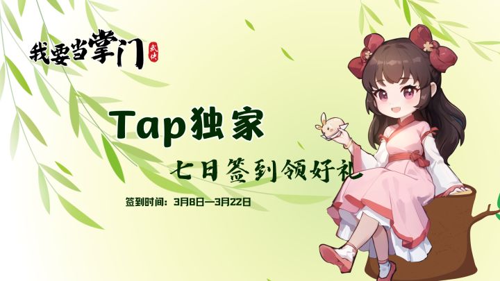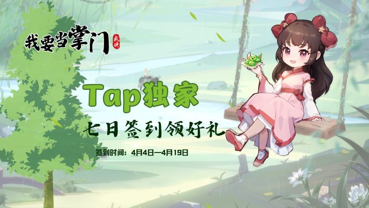 清明限时活动已开启!参与《我要当掌门》TapTap专属四月签到活动,领取武学残页、掌门令、秘境挑战书、紫色武学箱子、精美礼物箱......多重好礼等你来拿(✪ω✪)➡️2024年4月4日00:00 至 4月19日23:591、点击【】,可直接前往;2、进入【我要当掌门】论坛,点击顶部图标【签到有礼】即可参与;3、APP安卓端点击【我的游戏】,找到【我要当掌门】,点击签到活动展示块(如图示