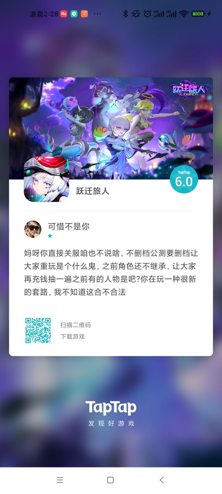 退一万步讲,假设你们真的没跑路,完全可以开两个区,老区的数据全部保存,新区继承氪金进度并给予一些补偿,到时候玩家玩那个区自己选择。哪怕你们真的重构了又能掀起多大浪,玩家都跑完了,口碑差到极点,重构后谁敢玩。玩家在游戏里花了三个月,角色,道具,进度说删就删,换做谁会高兴,哪怕重构后福利给的再好又有什么用。很多人喜欢弱pvp,不希望改动角色,不想要公会这些东西。重构后可以把星涡改了,然后把三周轮换