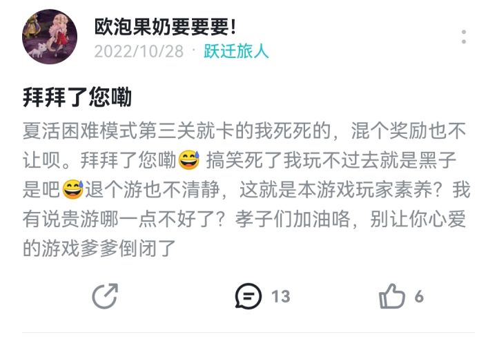 当初退游的时候吐槽了一下肉鸽,一群人追着我骂。啧,天道好轮回啊(本人的吐槽帖未使用任何敏感词汇和不干净言论😋)#宝藏厂商#游戏讨论