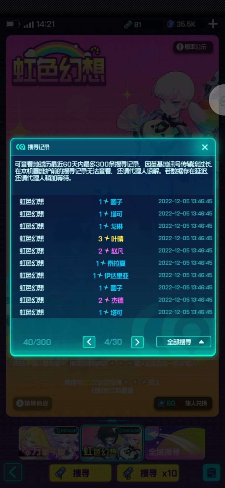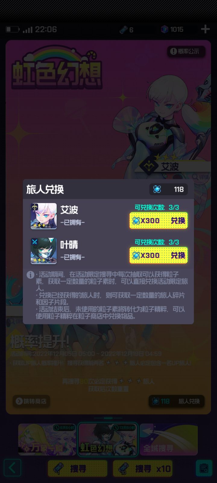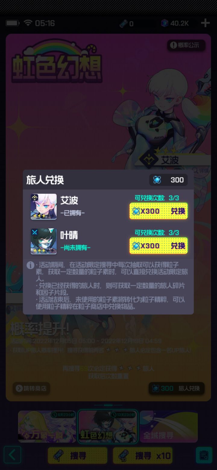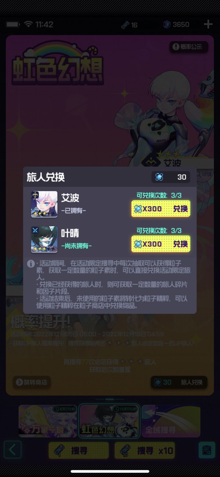 这概率真的劝退。。300抽一个叶晴都没有,五个艾波两个火贝基一个光弓一个海豚一个咕噜 原地爆炸😅😅