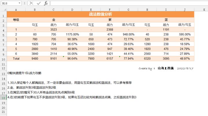 新版紫色战法搭配推荐如果要搞70人战法,建议紫色战法先全3级,之后一个一个升6级数据如下