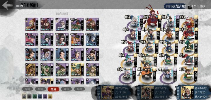 如图是我的阵容配置,孟获战法六级骂阵,郭嘉战法振奋自强奋武满级,朱然姜维战法满级。众所周知貂蝉人权卡,强在战法,现在人手一个貂蝉,搭配郭嘉延长战法时间基本可以左右战局,用我的配置实测郭嘉能在打盾兵时实现20s前开大保证在对面前排死光前对面一直在命中率debuff下输出,在打满星甘宁时能实现延长貂蝉战法两三秒的效果(没什么用,人家全高星顶着debuff都快把我前排打死了,减命中过了跟切菜一样)但是