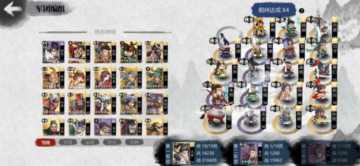 通关了,分享下阵容关键点:1.边路前排放枪,可以快速与敌边路二排枪接敌,阻止它去追我边路的骑兵2.边路后排放高星骑兵(并州),切地方后排,不要带加速的战法,跑的太快会被敌方枪兵追着打这个阵容180城委托干死3个军团,剩余三个留言+逃兵削到1600左右,委托干死