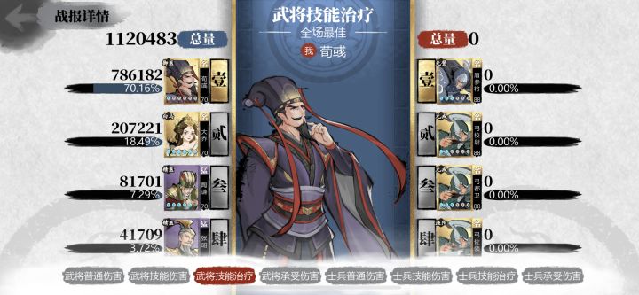 本来还想着等新的攻略看看弓枪新的出路。反正周末试了下奶,也就换了几个御医,我还没有郭嘉,兵种也还差些。枪弓直接败北的图,有奶都是低损。目前刚70,无脑全自动,推160+的图毫无压力,就是有点困了。不得不说狗货上版本鸡肋的技能,现在成了推图神技了。荀令君牛逼!无愧我大魏脊梁柱。附上阵容给诸位参考