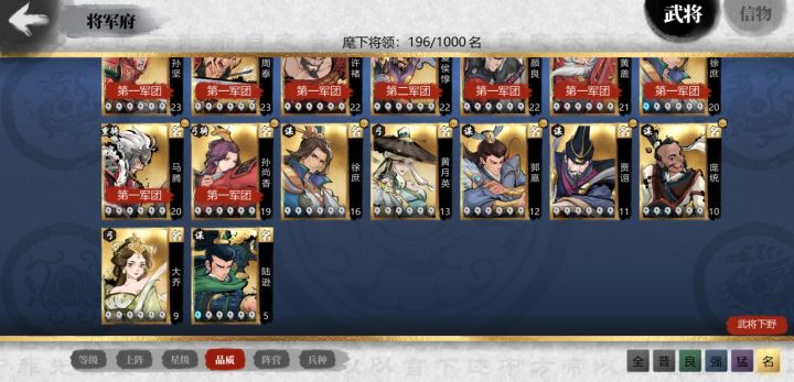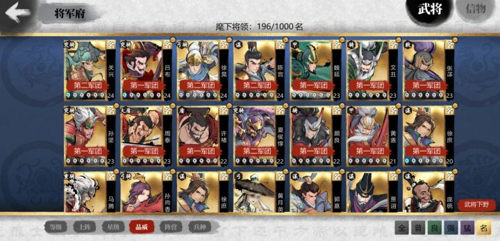 盾弓阵容大同小异就不逐个分析了 前排除了董卓全统御以外都是全运气 盾全武全统武统对点我都试过感觉最后还是全运好一点