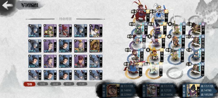 2.逃兵的作用比火计乱射这种好用 目测逃兵是从对面最后排开始减员 个人索敌都是4打4 主力放在第四排杀谋士 徐晃4级战法