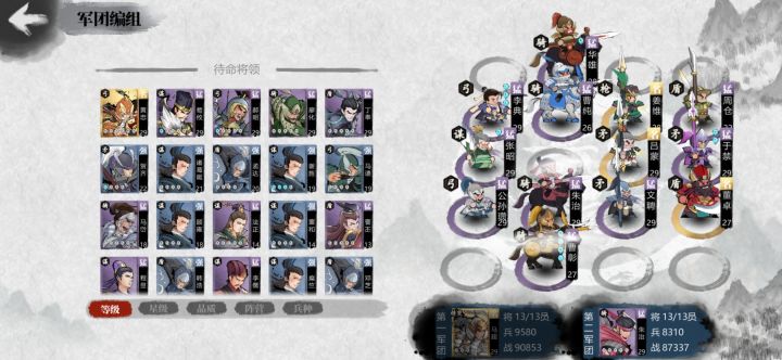 说下这队蜀枪虽然没有盾弓盾策这种来的低损 目前48级86城委托基本抵三队 但是这队很针对后期NPC越来越多的高级盾弓或者盾策就很好用组队就是刘备蜀国+姜维枪Ps.配个陶谦这队活了 可以把貂蝉空出来