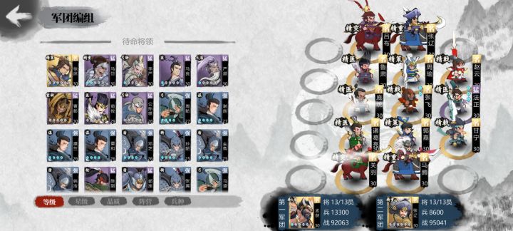 思路如下 盾牌抗伤,主盾刘备,黄盖,没有其他更好的盾牌了 输出弓箭,最好的就一个孙尚香,刘封是拿来凑刘备羁绊的严颜也是。程普是凑黄盖羁绊的拿其他更好的换掉最好 矛放弓后是因为矛跑的快,放弓前面的话容易出现缠住一支骑兵,第二只骑兵直接绕过去了,摆后面一般绕道的骑兵到达的时候刚好矛跟弓位置很接近第二只骑兵不会直接输出弓兵 骑兵放最后看我第一场手动就明白了,中下两个弓集火矛,骑兵直接长驱直入输出后排拿下MVP。自动的话会跟矛纠缠一会影响输出,不过效果还是一样的 说明一下,程普跟那个医策是弃子主要作用就是拿来阻挡上方的敌军,不管是骑兵还是盾枪什么的为下方自己取得优势争取时间所以后面跟着的是医策。我试过跟着矛或者弓,输出是快了很多,不过程普也会死的很快拿来打操练骑三就会出现对面骑兵快速突进己方下路弓兵导致战损很大亏亏兵