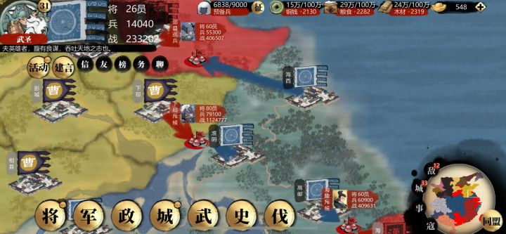 发现个问题,这城池的战力,每天一个样,涨的速度好像比我的快啊!哈哈