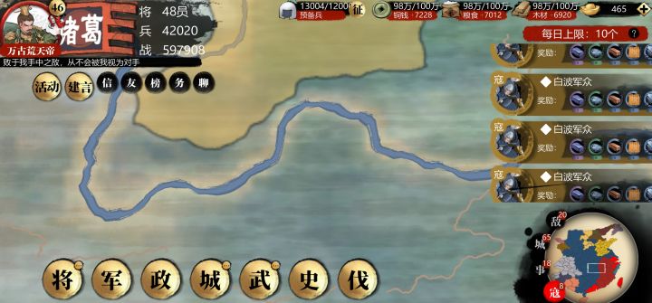 不是,现在这是怎么回事。 一堆bug,说是修复了,怎么越变越多。 吕布从昨天更新完了之后就在地图上到处乱晃,不杀人,都部队是差不多了,才跑回去。 真的无语