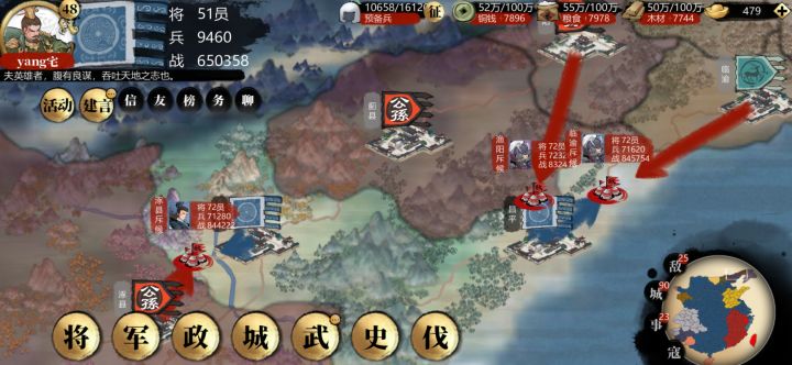 目前就等升级了,按每天刷10个流寇的升级速度,估计得一周才能到55吧,官方加点事情干吧,不想打竞技,我只想变强截图的公孙瓒是目前我面对的最弱势力了,还是大有可能全军覆没,策术都用了,还是顶不住对面车轮战,没得法了