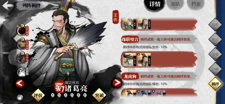 游戏羁绊未实装以诸葛月英为例测试148115+206805=354920我真受不了 练兵也是空壳 重置完就预备兵上限变了如图五图六所示23400变为了18000 但是看图七我诸葛亮一人进图还是206805而且战力也没变 不可能是血量显示BUG这说明和战斗相关的点没实装