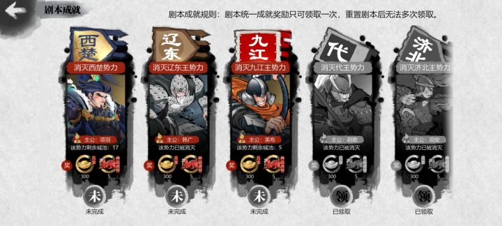 反馈bug,楚汉剧本,消灭了辽东但是领不了奖励???