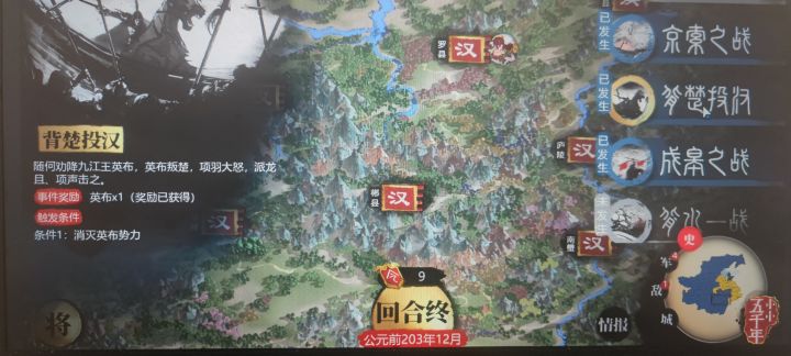 楚汉争霸把英布势力灭了,历史事件完成了,剧本成就也显示消灭了,但是不能领取奖励🤔