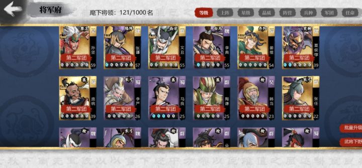 好兄弟们,为什么明明包里有一个武将但是在军团编组的时候就不显示呢