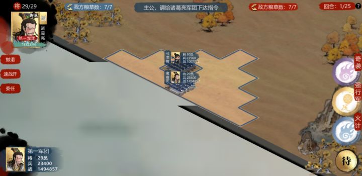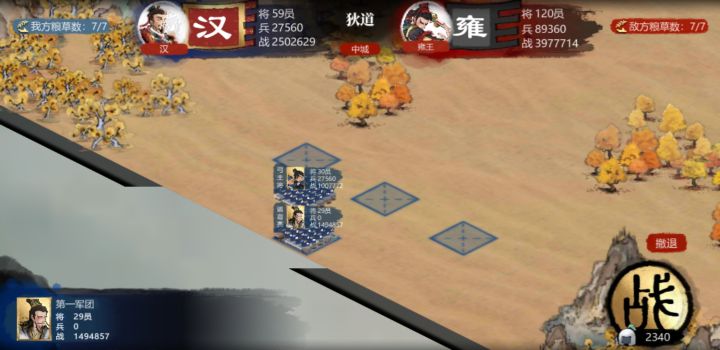走着走着兵就没了。每场补充兵力,没兵打不过啊。1图是开始,不管你有没有兵都是0兵,必须补充兵力。2图补充好了兵力开始行动,3图电脑兵和电脑兵打了一架,然后还没触敌的主力兵就没了。这么办?没兵完全大不了啊?