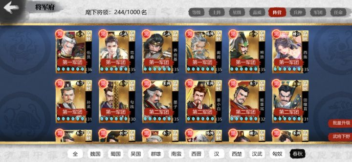春秋梯度排行(10.1更新+部分楚汉西晋武将+西晋池整体推荐度)