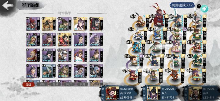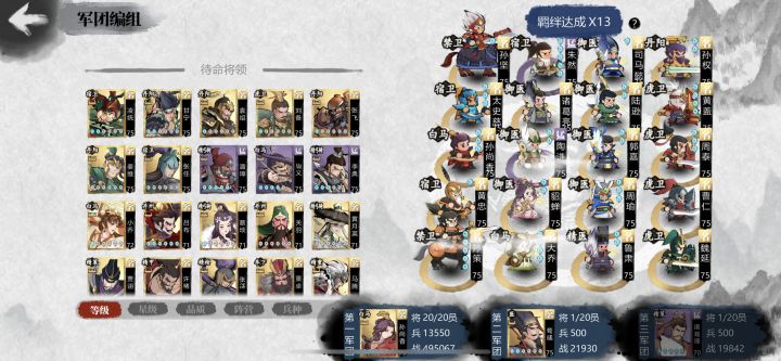 毕业了,第一梯队估计已经长草🌿了。之前爬到了165藤甲医弓全锁敌才打1换四,还要卡流言逃兵能过是能过但是太累了过了又没什么奖励,就一心想躺平了,一夜之间什么都变了。。不多说,骑兵,天下第一!还是感谢哪位兄弟,这作业是真香,根据我自己的前排枪自己调节了一下,有袁绍可能更好,这个是应对副本的,PVP还要看看,副本最后三个城刘备孙坚下路要猛一点,常常被打穿所以把吕布那一排放下面,快速破盾,曹操就把最