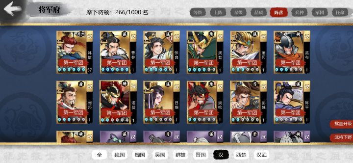 萌新求助刚玩三天,升到65级抽了汉池,我一队20将已经100级了,这么多1级汉将怎么升级快呀,看着愁人