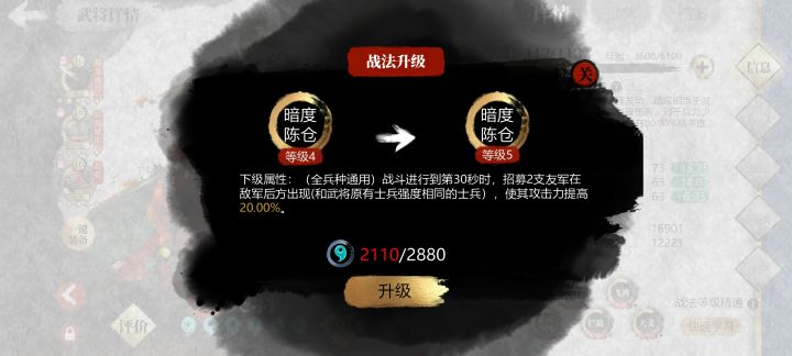 关于楚汉战法,暗度陈仓。虽然说明是和武将原有部队强度相同的部队,但实际上只能召唤骑兵,还是三级兵种,给弓兵策士分别带上结果相同,因为是独立部队看不到伤害,也不知道这个所谓强度相同是否继承武将战法,应该是不继承战法,只继承基础属性,这样的话推荐给战法只加成武将的物理兵种带,孙策马超赵云一类,或者给盾带当肉骑用