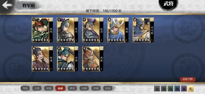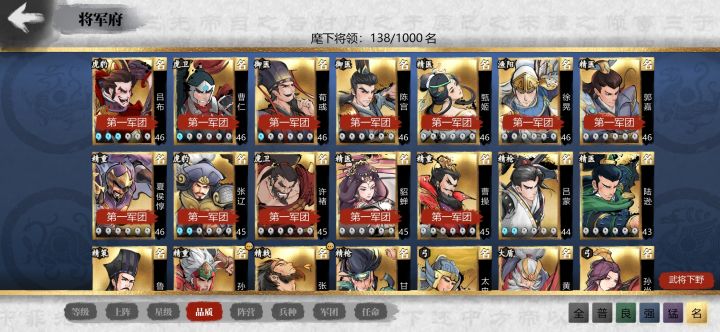 有没有大佬指点下阵容,之前上的都是魏国,发现强度有线,卡图了,橙将就这些,紫将基本都有,求指点。