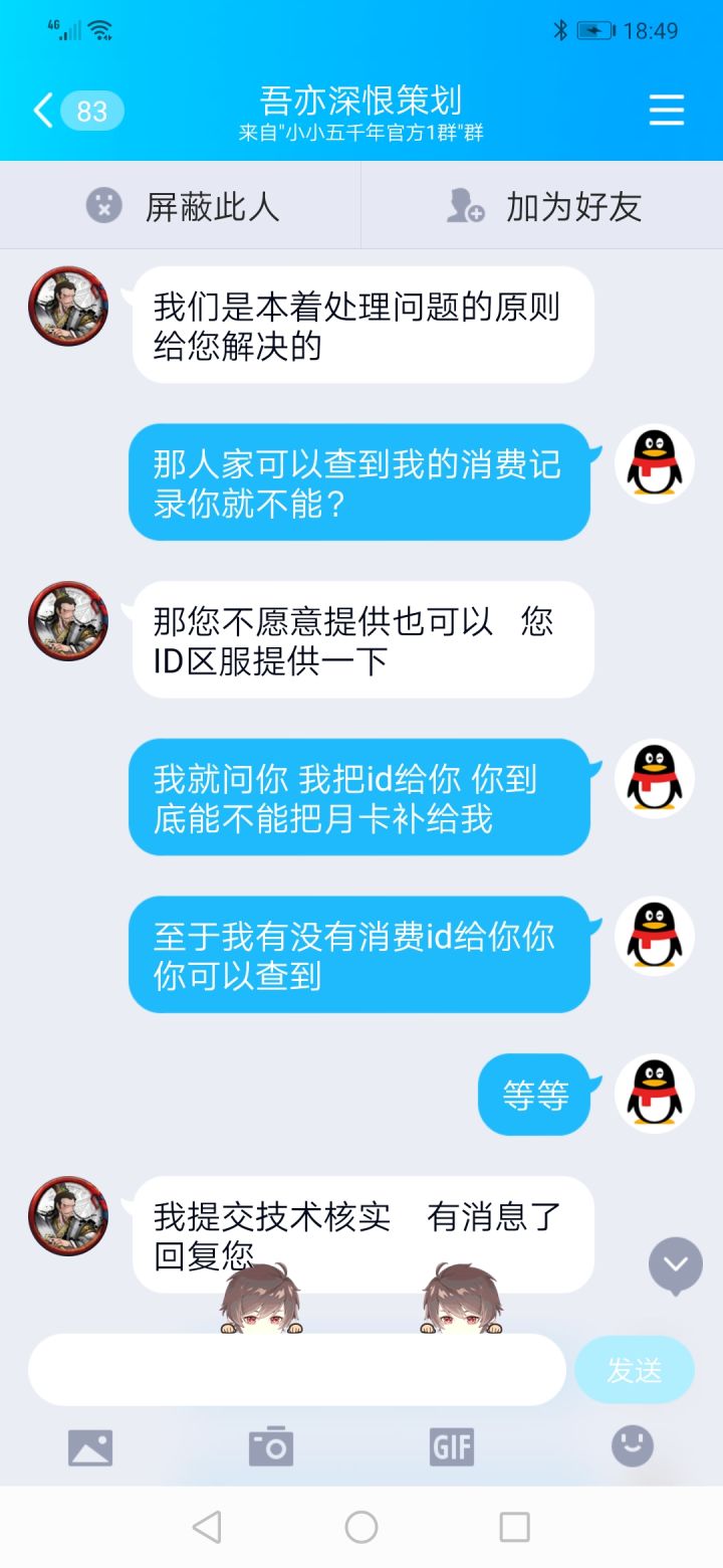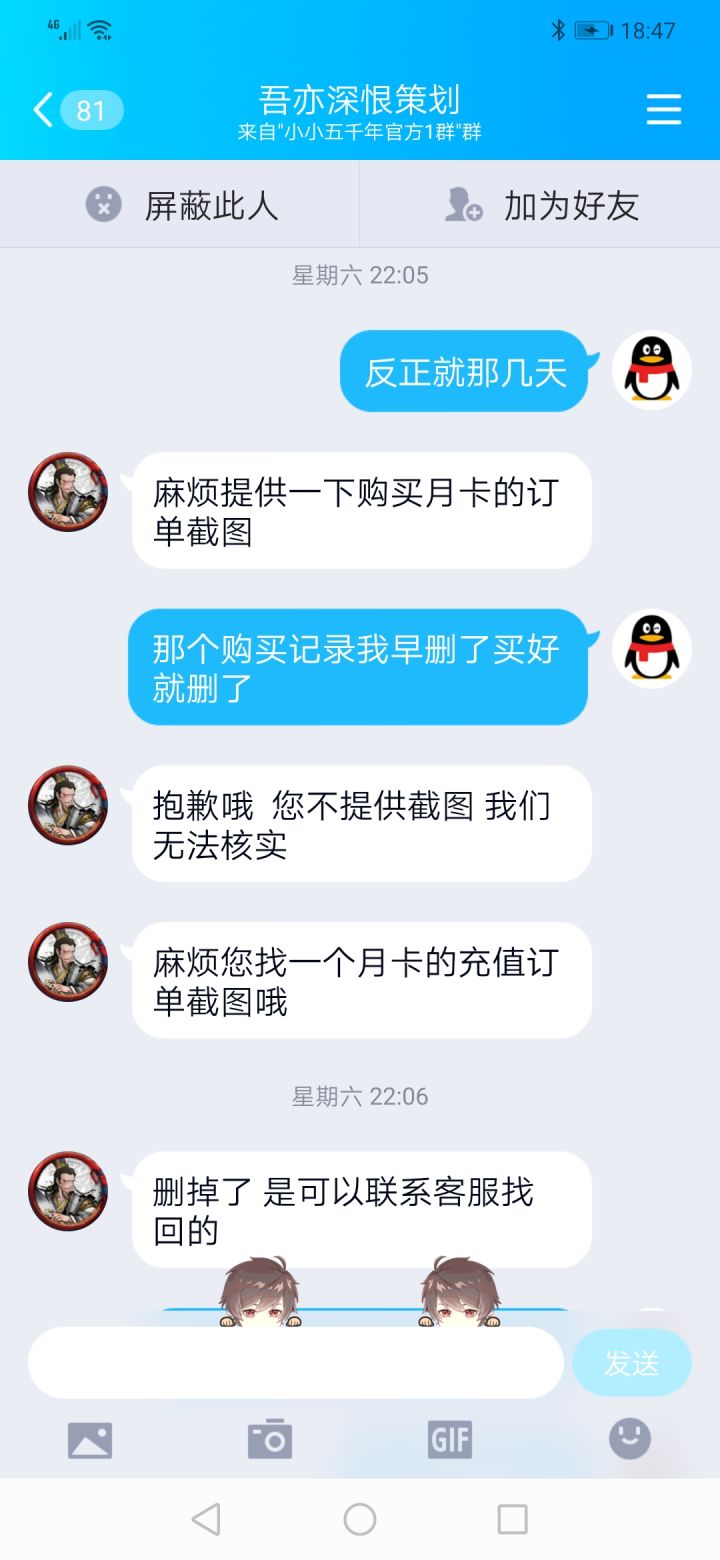 (回归重点)我重回游戏发现我的月卡莫名其妙被清空了之前的月卡还有一段时间过期我就找到了现在的客服,客服的回复也是神了,连忽悠带欺骗,还好我有官方群问了下以上是我发的四张图 100元宝虽然不是很多但是能看出游戏商对待玩家的一个态度。