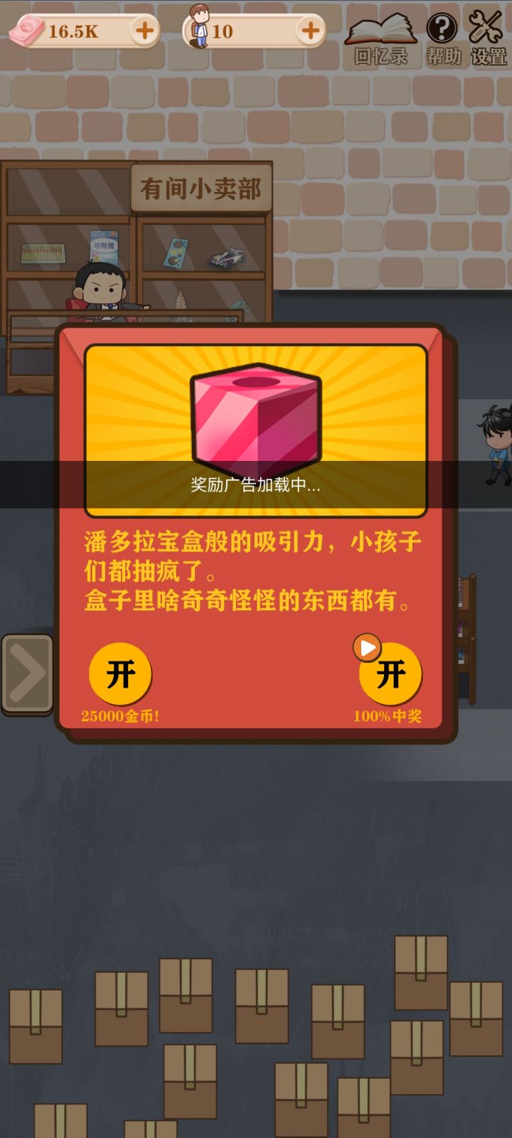 已经解锁了所有,除了电子宠物,实在抽不到,然后不知道玩啥了。建议:1.增加抽奖金额或者抽奖概率。2.物品采购需要重新考虑下,采购时长?3.每个时间段产生一个热销产品,卖出价值增加。4.增加可玩性后考虑离线卖货。5.部分货物只能通过抽奖获得,不能采购。6.增加一个过期概念?