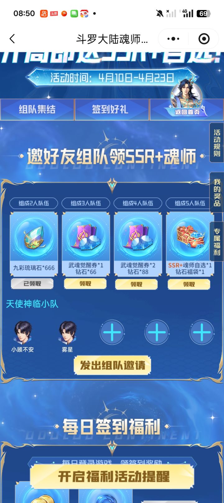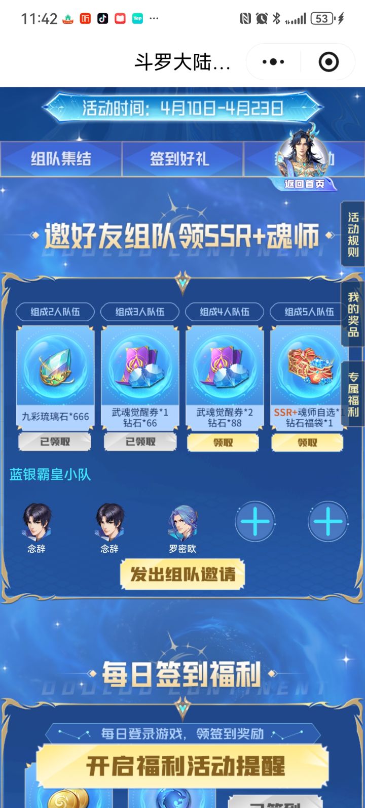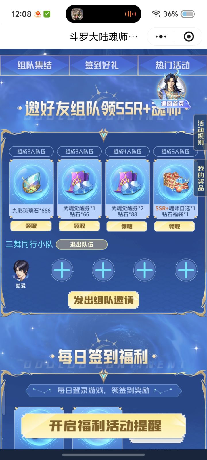 点击链接打开小程序加入我的队伍,领游戏好礼:就差两人了