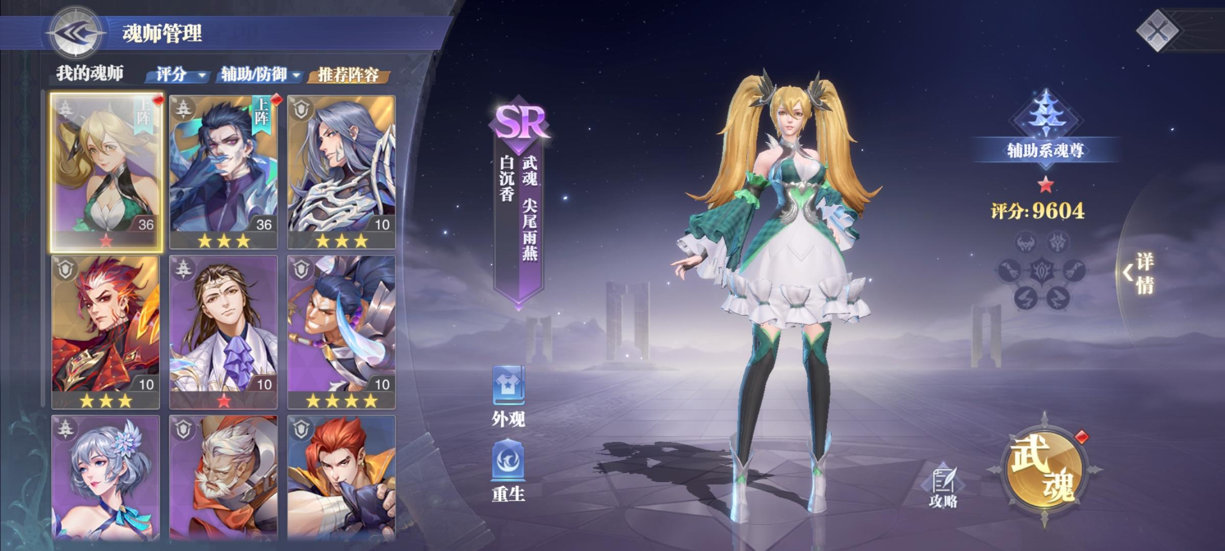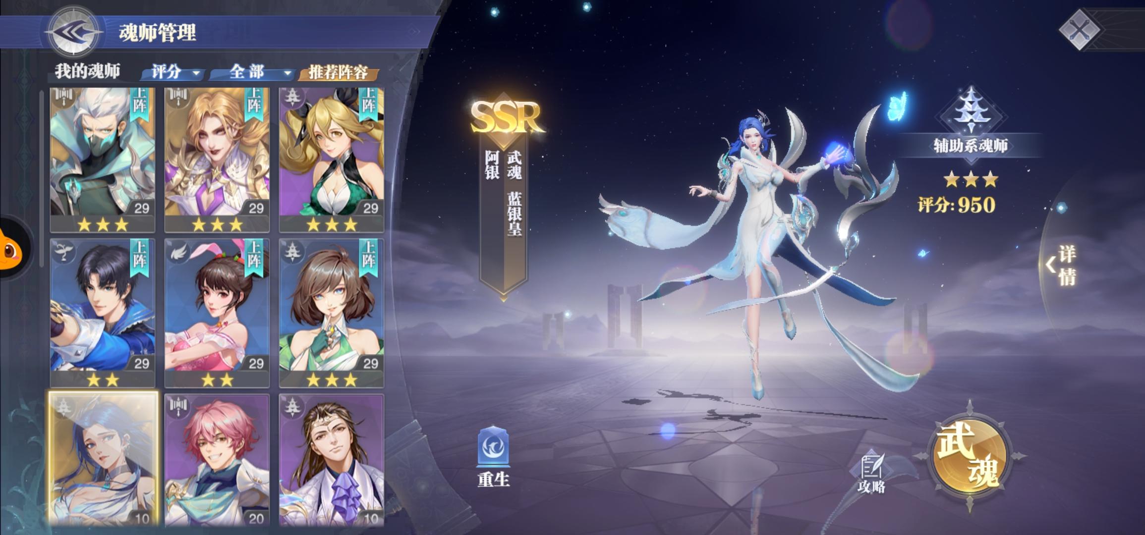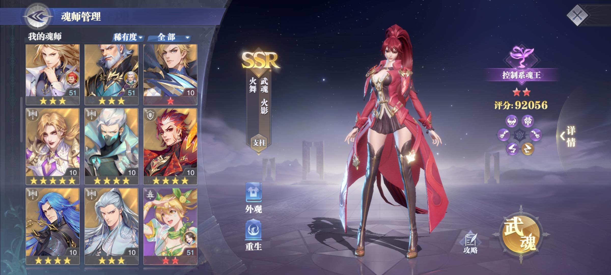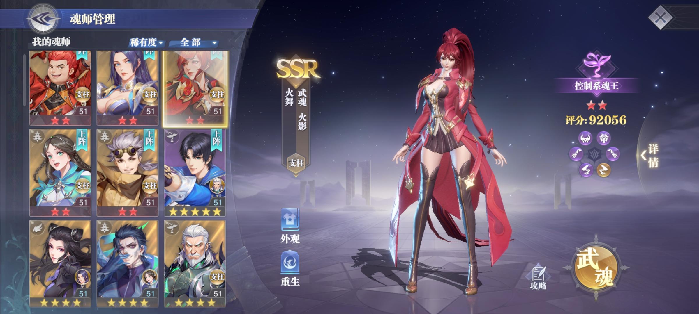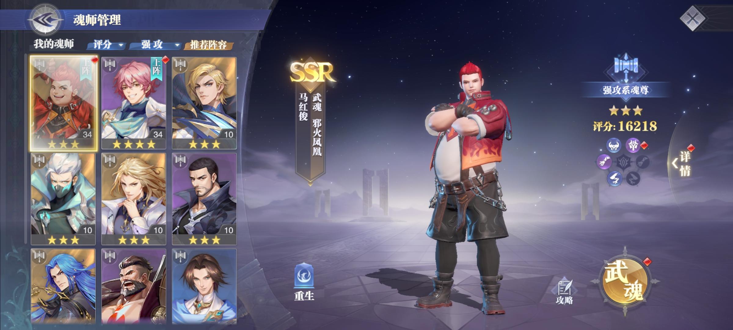 上阵魂师前6个(锤三、马红俊、朱竹清、柳二龙、火舞、宁荣荣)。纠结现在自选SSR选择哪个?奥斯卡?戴沐白?古榕?炎?